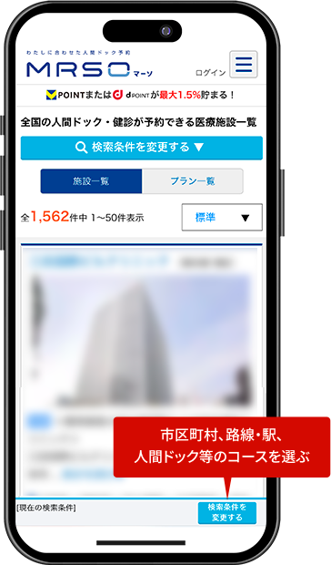 全国の医療施設からご希望の条件を設定し、医療施設、プランを絞り込みます。