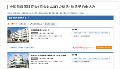 2ご希望の検査が受診できる医療施設の中から選択ご希望の検査を受診できる医療施設が一覧で表示されます。