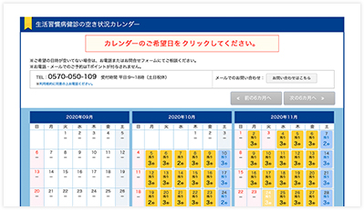 3空き状況を確認し予約申込みマーソ契約医療施設ではweb上で空き状況をご確認いただけます。ご確認の上、ご希望日の予約申込みを行ってください。