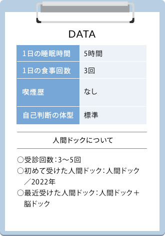 日頃の飲酒量とお米の摂取量が多く、血液検査では脂質に関する数値が高い状況です。職場の定期健康診断では脂肪肝に注意するよう言われ、糖尿病予備軍とも診断されました。年齢的に高齢者の仲間入りをしましたが、今後とも健康を維持して働きたいと考えているため、人間ドックは定期的に受診するつもりです。