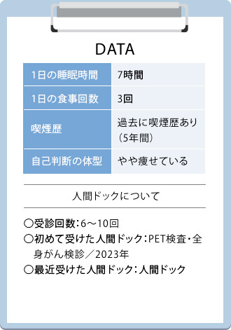 50歳前後で、がんによる抗がん剤治療と大腸ポリープ切除を経験しました。定期的な運動や飲酒量のコントロール、食生活に気をつけています。効果が大きく出ているわけではありませんが、これらに取り組んでいることは今後、歳を重ねる上で大事だと思って継続しています。